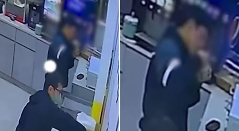 영상에는 아이스크림 코너 앞에 서 있는 한 남성의 모습이 담겨 있다.