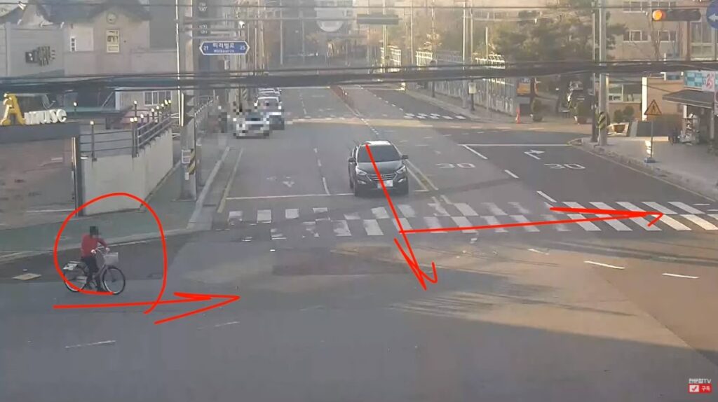 또 “운전자는 직좌신호였기 때문에 (B씨가 넘어진 오른쪽이 아닌) 왼쪽과 앞을 바라본다”며 “B씨가 역주행해서 오른쪽에서 들어올 거라고는 예상을 못 했을 것”이라고 설명했다.