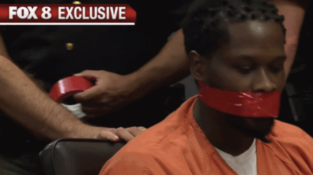 결국 루소 판사는 집행관들에게 윌리엄스의 입을 테이프로 막을 것을 명령했다. 집행관들이 그의 입에 빨간색 테이프를 꼼꼼히 붙였고, 그제야 법정이 조용해졌다.