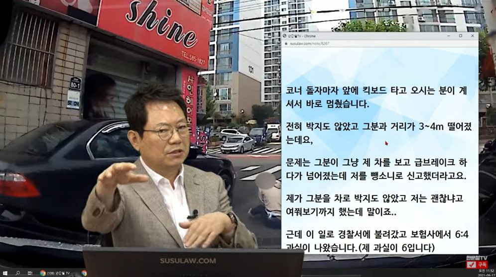 한문철 변호사는 “일시 정지했다가 막 출발했는데 전동킥보드가 역주행으로 오다가 급제동해서 넘어졌으면 어차피 똑같은 상황이다”라고 말했다.